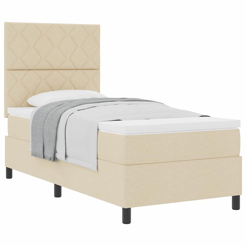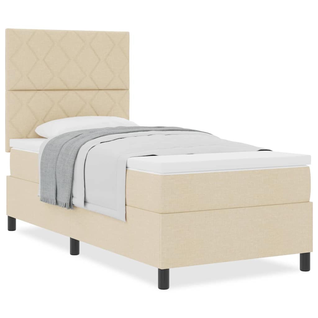 Denne boxmadras kombinerer elegance med praktisk anvendelse. Den er en fantastisk sove løsning til dit soveværelse. Det cremefarvede stof og de stærke træben forbedrer ikke kun udseendet, men sikrer også komfort og holdbarhed.